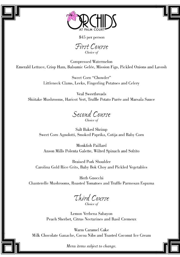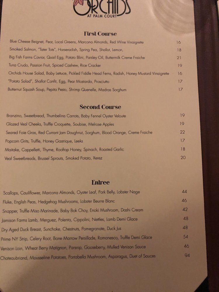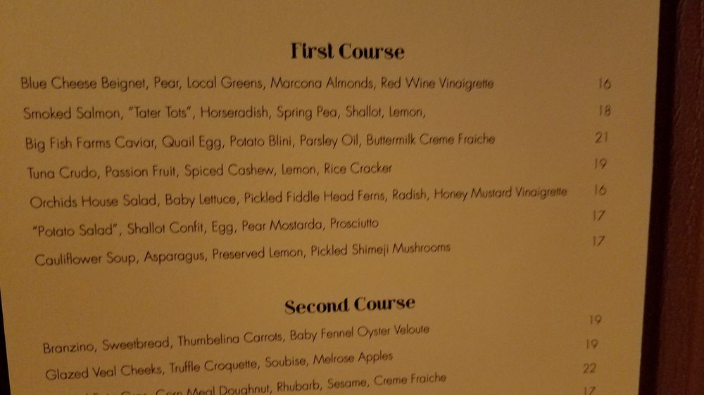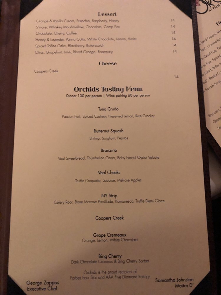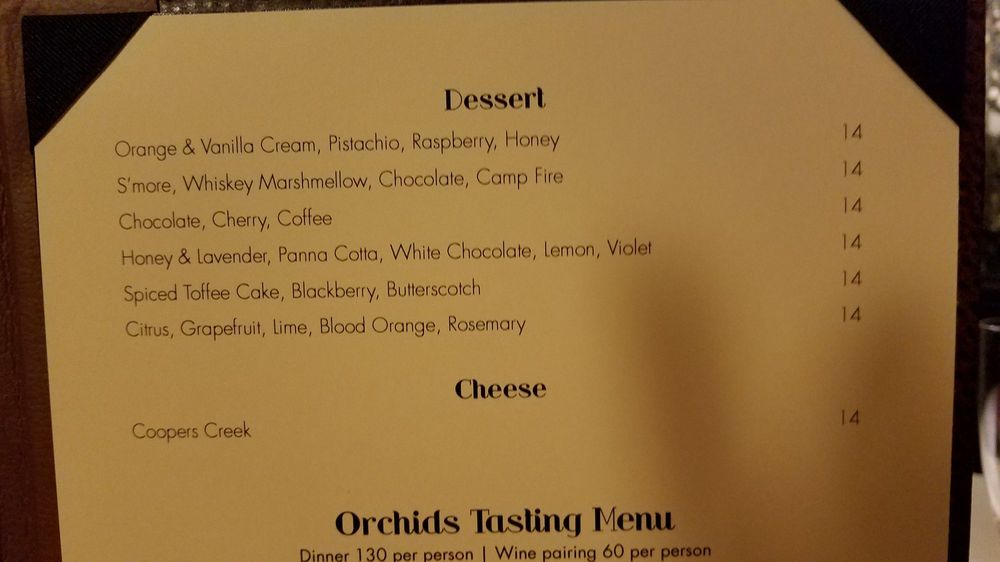 Orchids offers a customizable dining experience, allowing guests to choose from a la carte or prix fixe options, ensuring every palate is satisfied. Each dish is not just a meal; it's an art form, thoughtfully prepared to highlight local ingredients. Complement your meal with a curated selection of fine wines, and don't miss the chance to savor a house-made dessert, while enveloped in an atmosphere of sophisticated elegance. Dining at Orchids is truly a memorable culinary celebration.